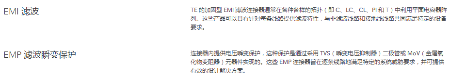 凭借有助于降低系统总成本的可降低重量和节省空间的结构,TE 的德驰滤波连接器技术为您在严苛环境中控制 EMI 干扰并提供 EMP 保护。使用滤波连接器可减小重量和节省空间,从而提供技术和商业优势。德驰在设计和提供标准或定制连接器解决方案方面拥有 20 多年的经验,这些解决方案具有集成的EMI(电磁干扰)和 EMP(电磁脉冲)抑制功能。