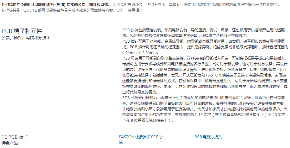 通过 TE 端子、断路器和应用工具实现与印刷电路板的可靠连接。
