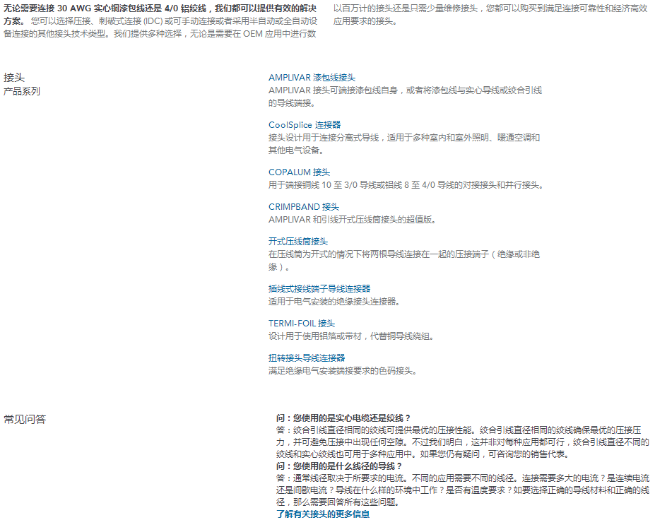 我们广泛的接头可用于连接实心导线或绞线:铜、铝或二者合金材质均可。