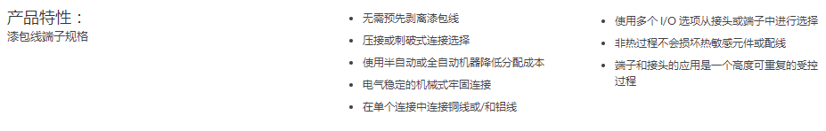无论是端接电机、螺线管、变压器、线圈还是其他漆包线应用,我们的产品组合均可为您提供进行有效连接的选项。设计用于端接铜线或/和铝线,我们的漆包线端子可为原始设备制造环境提供高吞吐量解决方案。